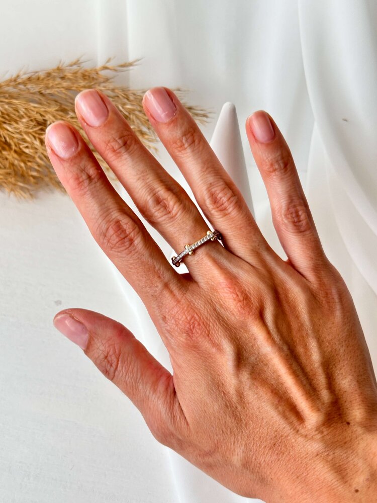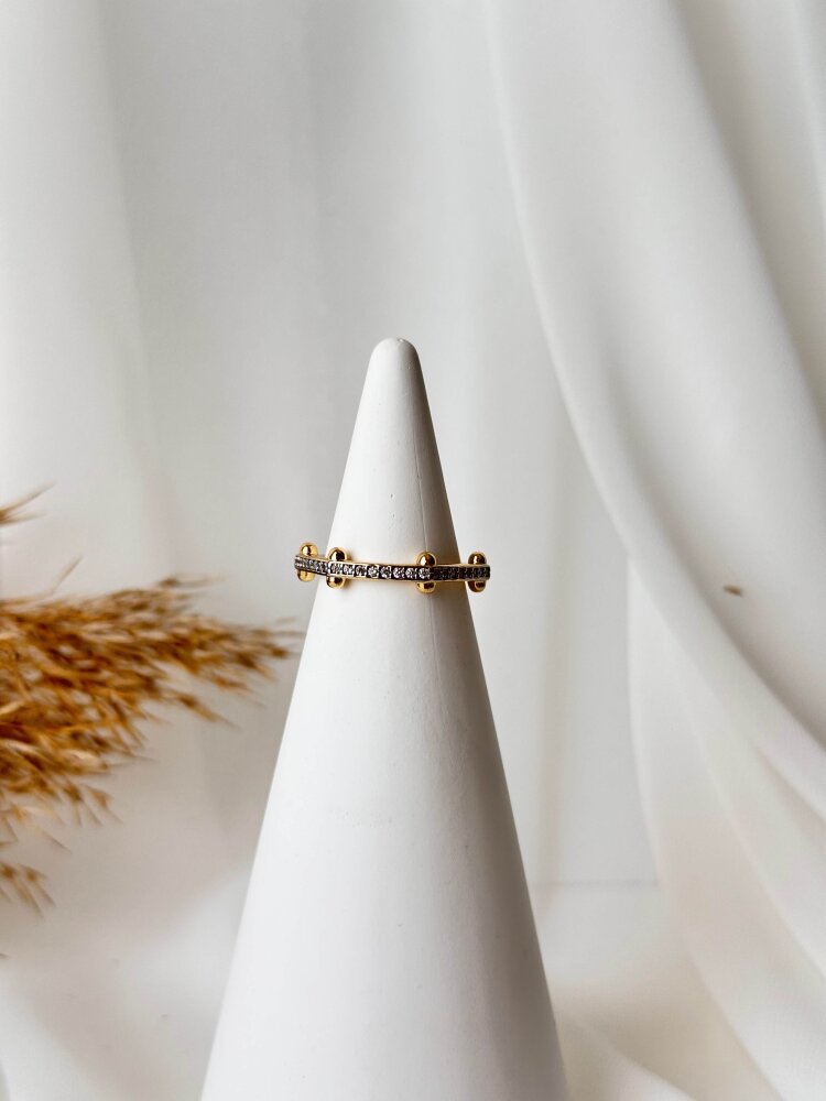 Kemik Görünümlü Taşlı İnce Yüzük - Gold