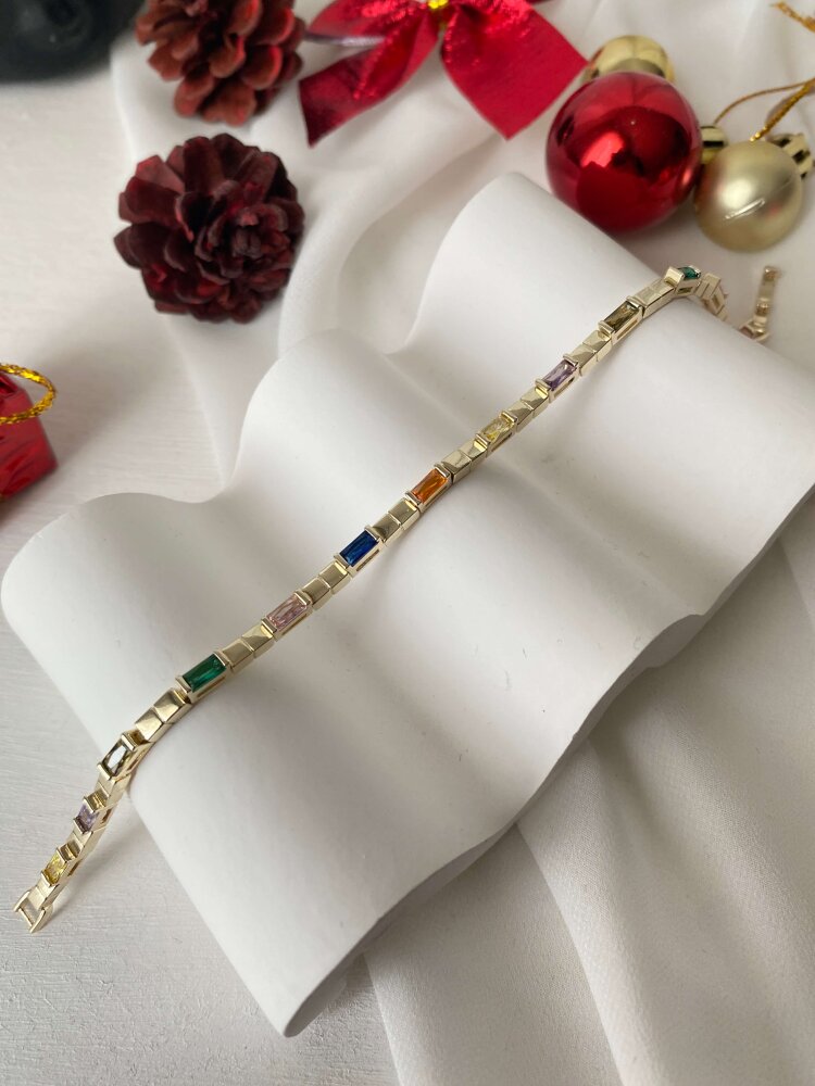 Çok Renkli Dikdörtgen Taşlı Bileklik