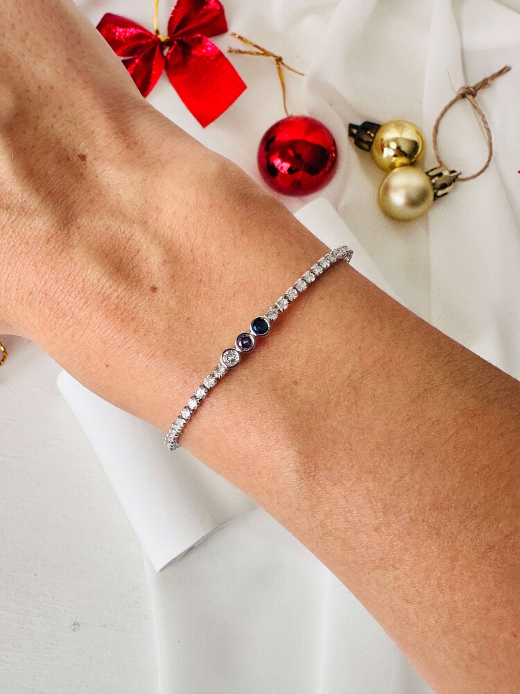 Ortası 3 Taşlı (Mavi-Pembe-Beyaz) Çıtır Bileklik