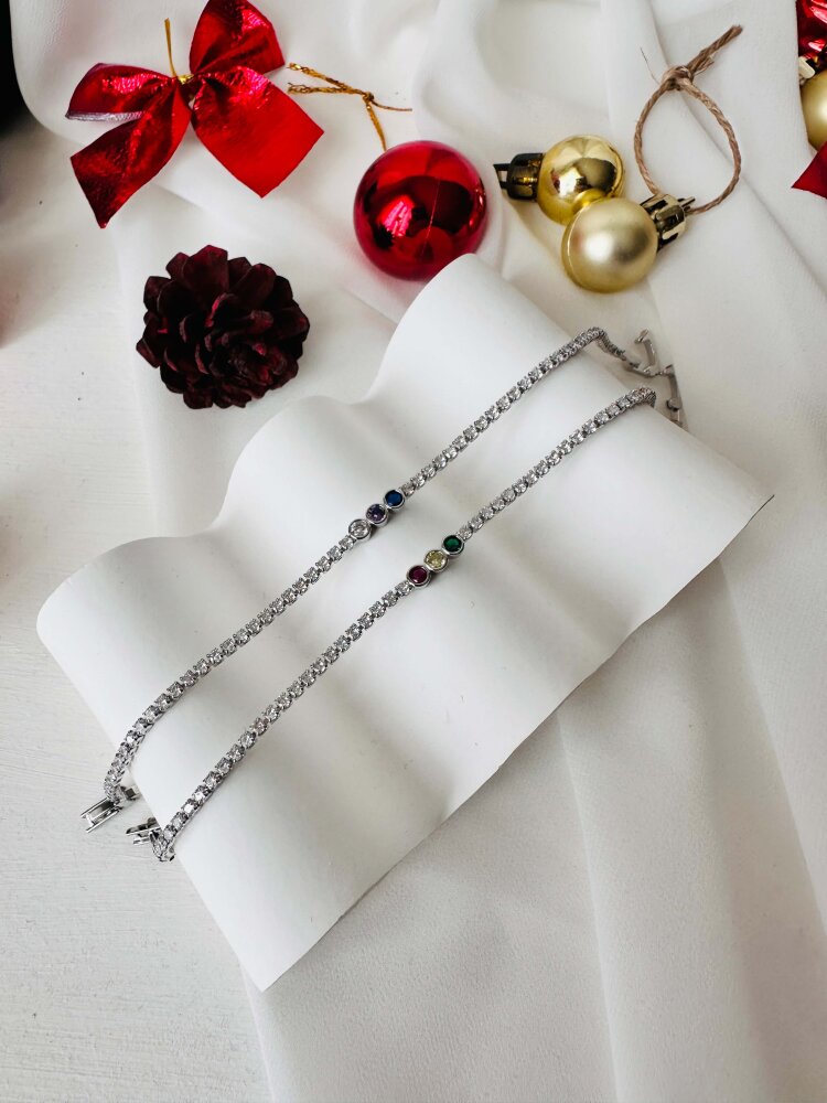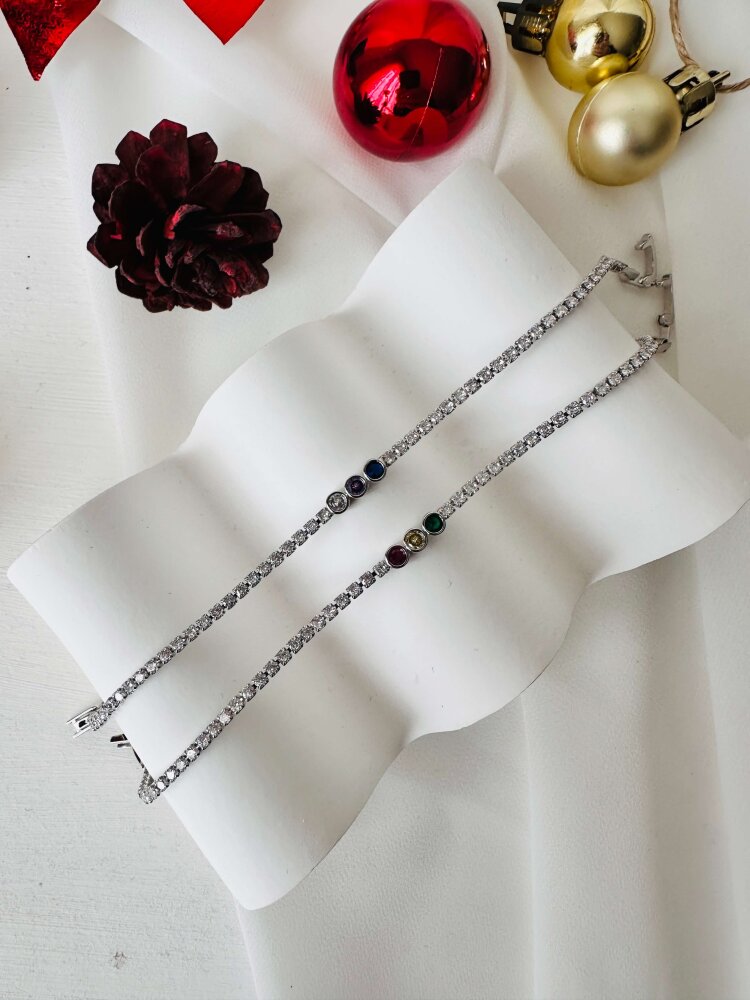 Ortası Yuvarlak Taşlı Çift Renk Bileklik