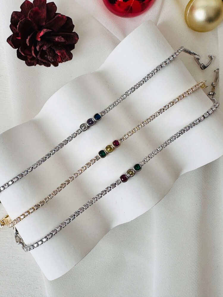 Ortası 3 Taşlı (Pembe-Sarı-Yeşil) Çıtır Bileklik