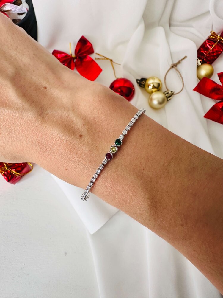 Ortası 3 Taşlı (Pembe-Sarı-Yeşil) Çıtır Bileklik