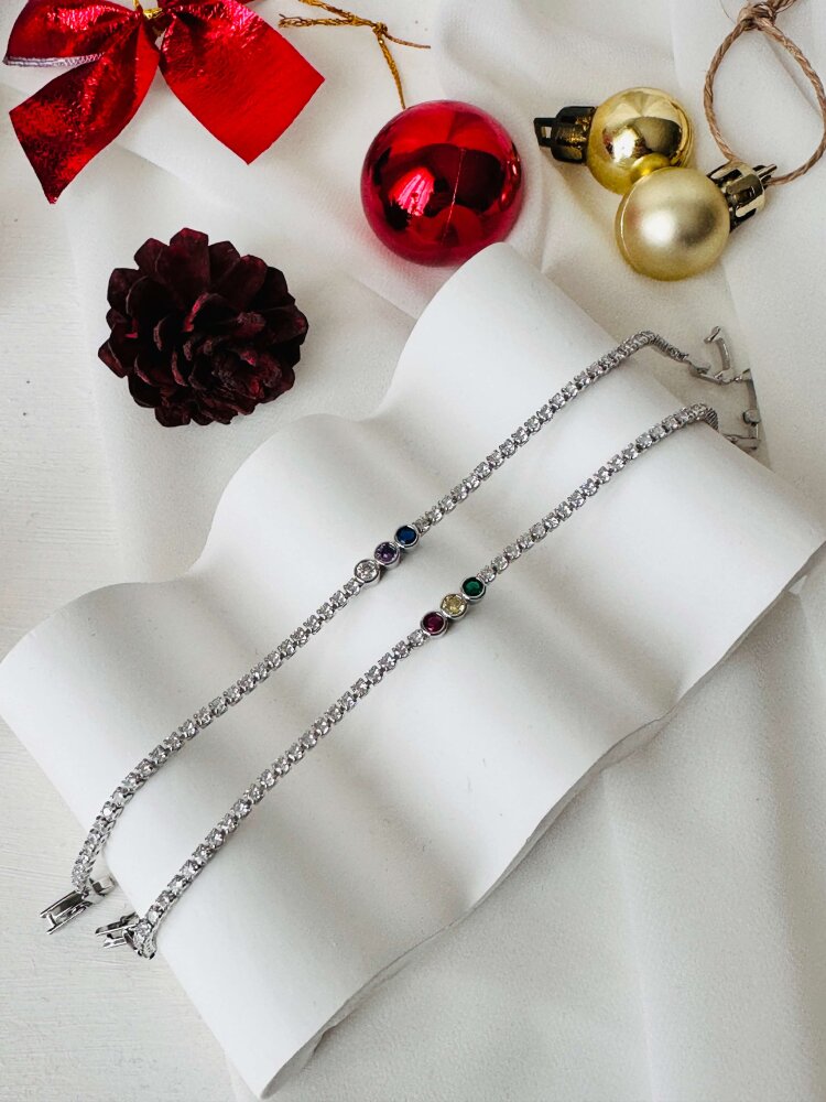 Ortası Yuvarlak Taşlı Çift Renk Bileklik