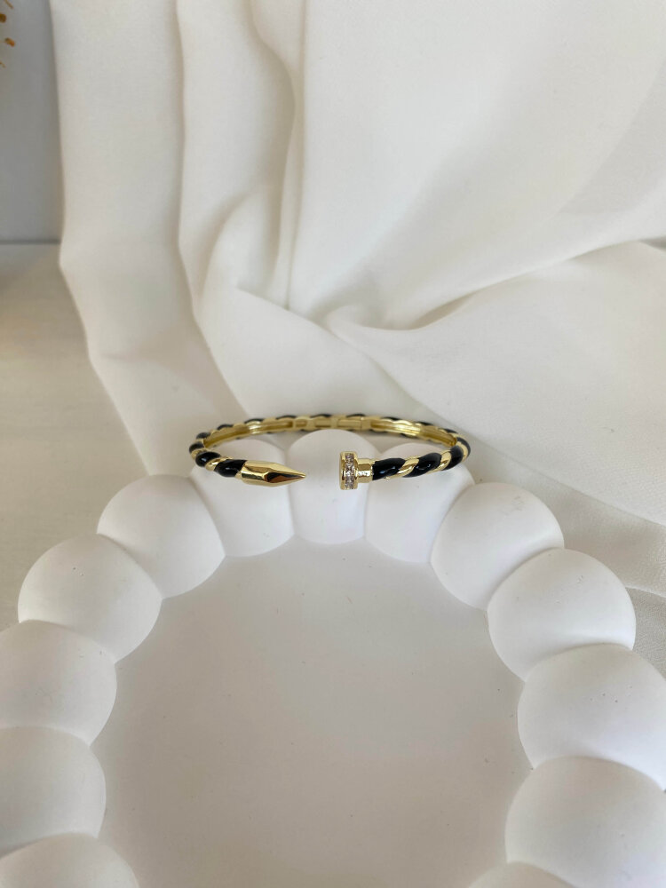 Siyah - Gold Renkli Çivi Model Kelepçe
